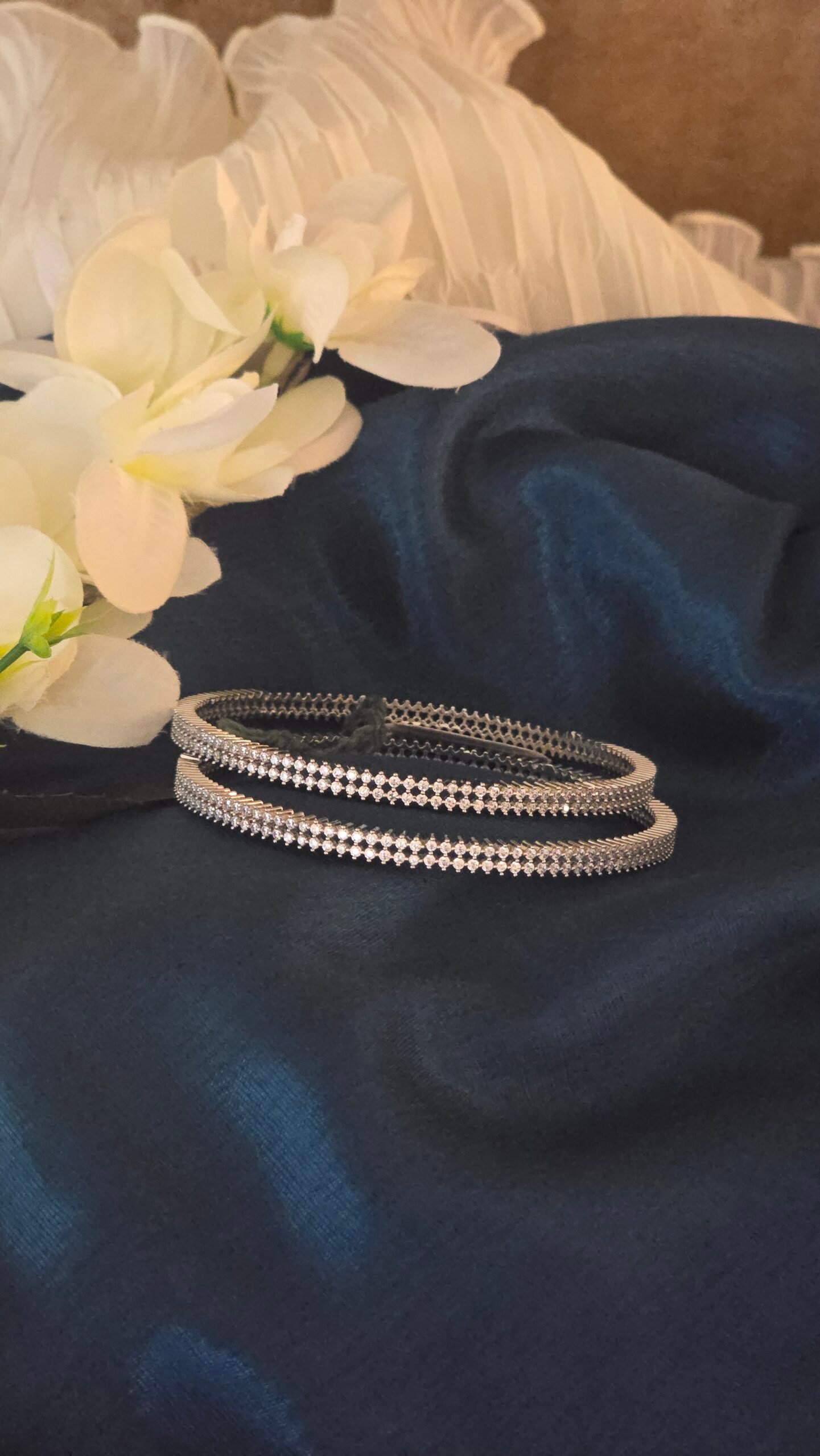 โœจ Elegance Sparkle Glow Bangles โ€“ Rhodium Polish