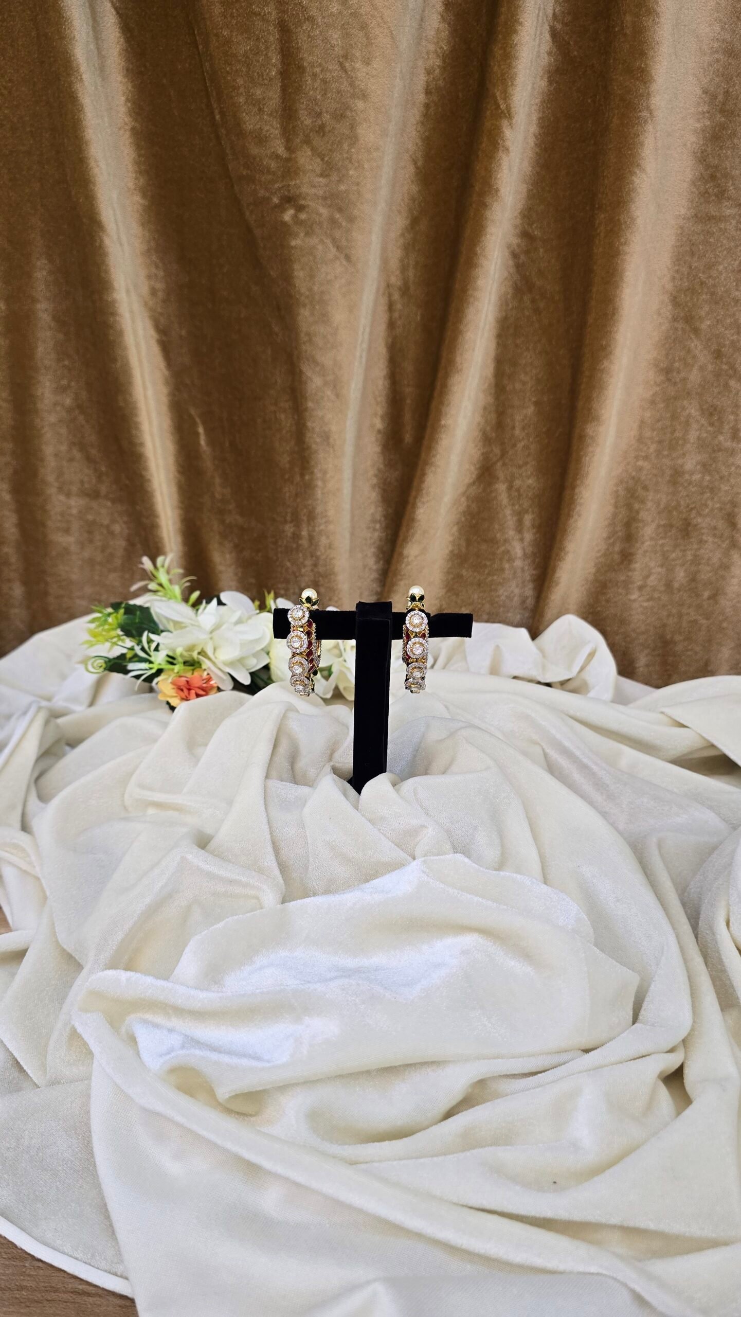 Embrace the legacy of royal adornment with Kundan Classics, a pair of earrings that celebrate the enduring charm of traditional Indian jewelry. Meticulously handcrafted with gleaming Kundan stones and delicate gold accents, these earrings are a tribute to heritage, grace, and sophistication.